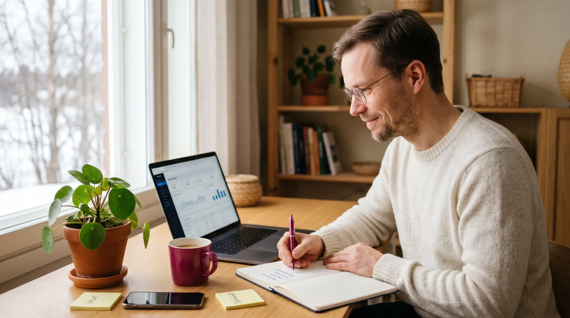 Muokkaa AI:n ehdotusta omaan tyyliisi drag & drop -editorilla. Vaihda kuvat, säädä tekstit ja värit. Tarvittaessa saat suomenkielisen asiantuntijan avuksi yhdellä klikkauksella.