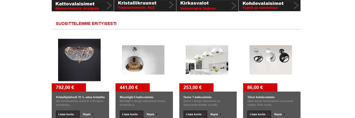 Kun laajensimme kauppoja halusin eri aihealueille oman maailman, eli visuaalisen ympäristön joka puhuttelee ostajaa, asiakasta. Tämä voi olla hankalempi ja työläämpi tie tilausten saamiseen, mutta kohdentaminen on mielekkäämpää. Teimme ensin 4 kauppaa lisää ja nyt kauppoja on yhteensä 9. Ilman oikeaa, neuvovaa ja strategista kumppanuutta Zonerin ja verkkokauppatoimittajan kanssa, ei multikauppa olisi ollut mahdollinen.”