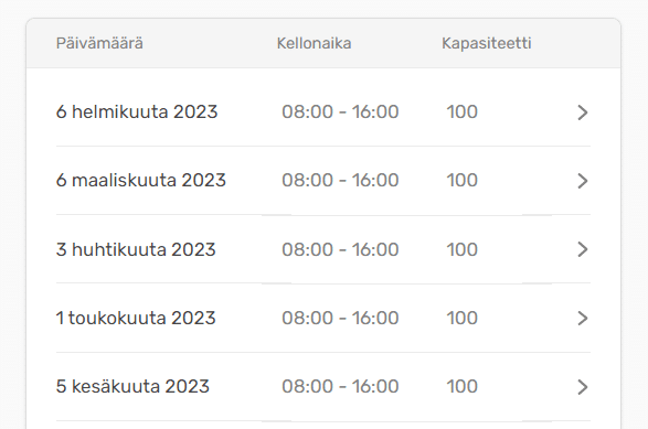 Tapahtumalle määritellään aika ja tapahtumapaikka. Ajan ei tarvitse olla yrityksen aukioloaikojen sisällä. Asiakkaat voivat ilmoittautua tapahtumaan kalenterin kautta.