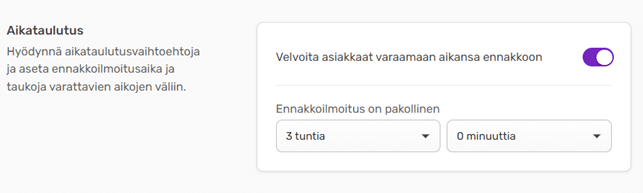 Valitse kuinka paljon aikaisemmin tapahtumaan pitää ilmoittautua.