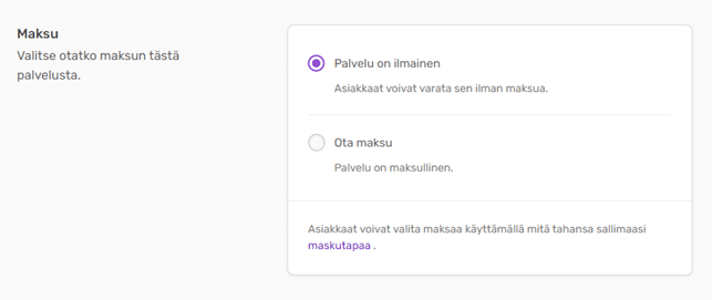 Voit asettaa palvelun ilmaiseksi tai määritellä sille haluamasi hinnan.