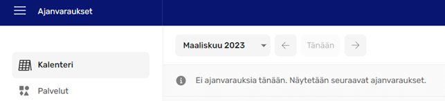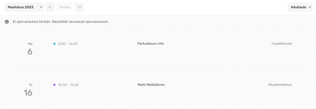 Palvelun tietoja voi hallita eri tavoin palvelun tyypistä riippuen. Mene ensin kalenteriin, jossa näkyvät tulevat ajanvaraukset.