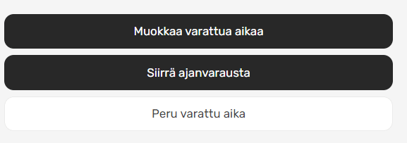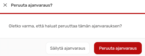 Peruaksesi varatun ajan klikkaa Peru varattu aika ja vahvista peruminen klikkaamalla peruuta ajanvaraus.