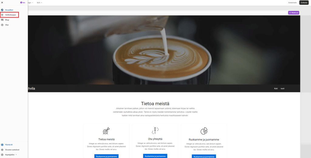 Paina ”≡” painiketta ja valitse  ”Verkkokauppa”