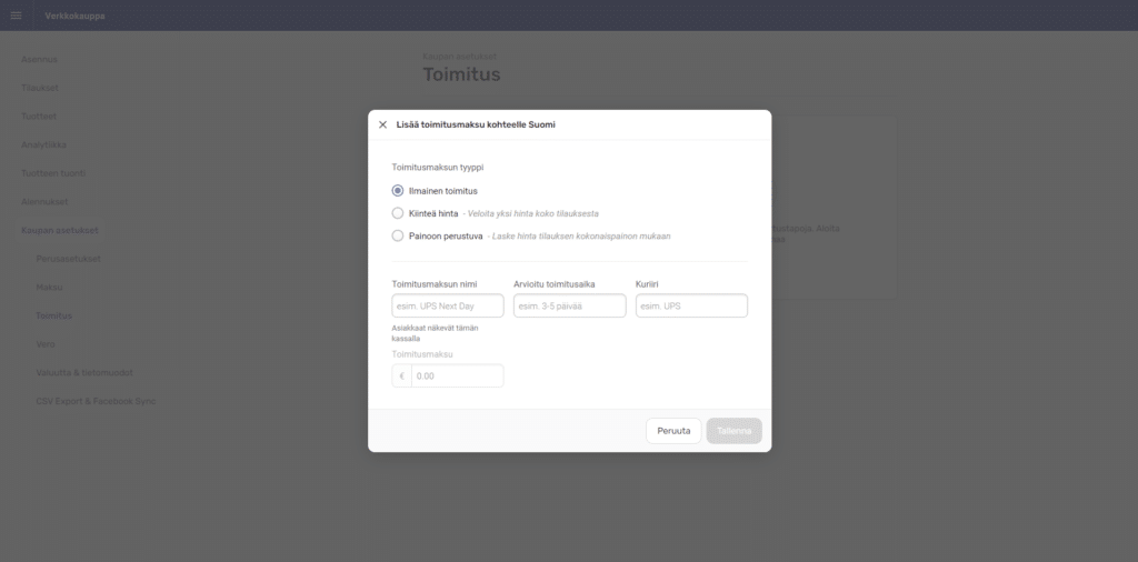 Viimeinen asia ennen kaupan julkaisua on toimitustavan sekä maksujen määrittäminen.