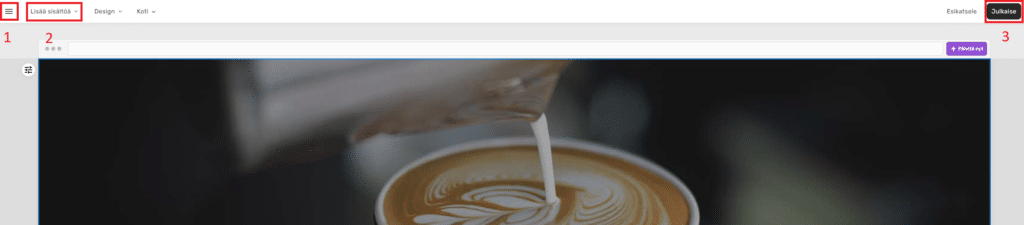 - Sivustoeditori – Siirry työstämään esimerkiksi blogia tai kauppaa.