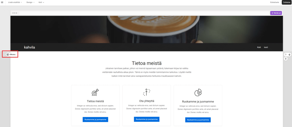 Osion ulkoasua voi muokata vasemmassa reunassa olevan painikkeen avulla.