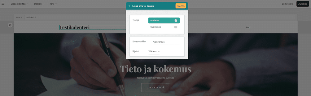 1. Luo uusi sivu nimellä ”Ajanvaraus”