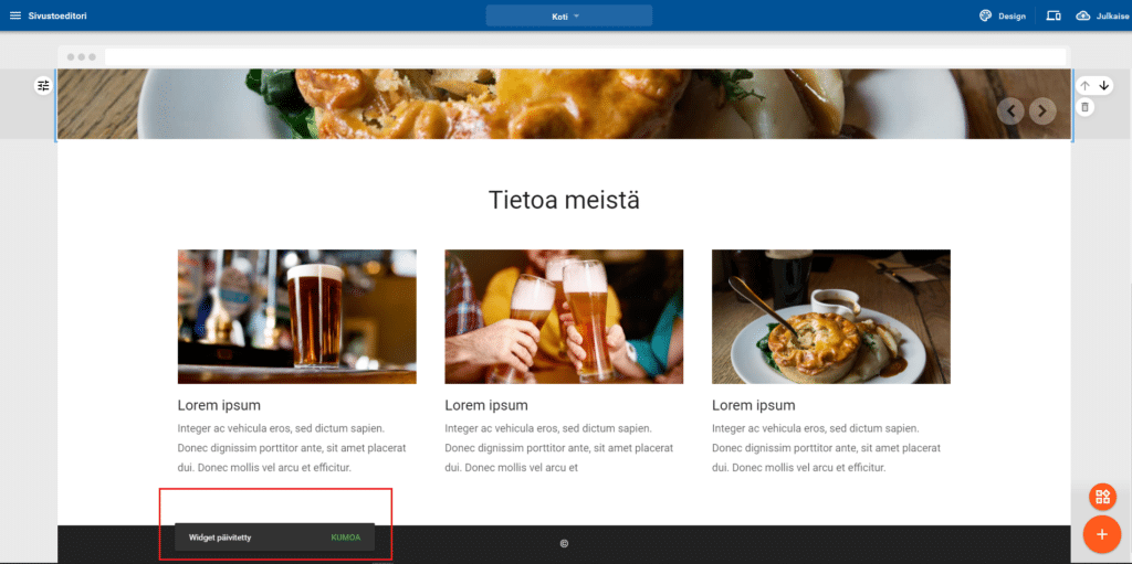 Kun olet tehnyt muutoksen, näet Kumoa-painikkeen, jota napsauttamalla voit perua muutoksen.