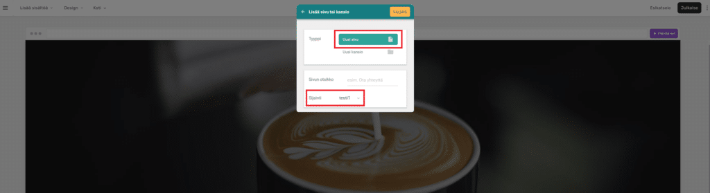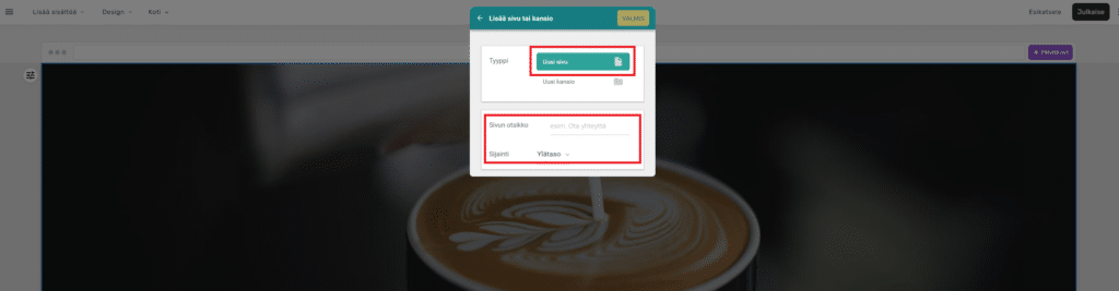 3. Lisää otsikko ”Sivun otsikko” kenttään.