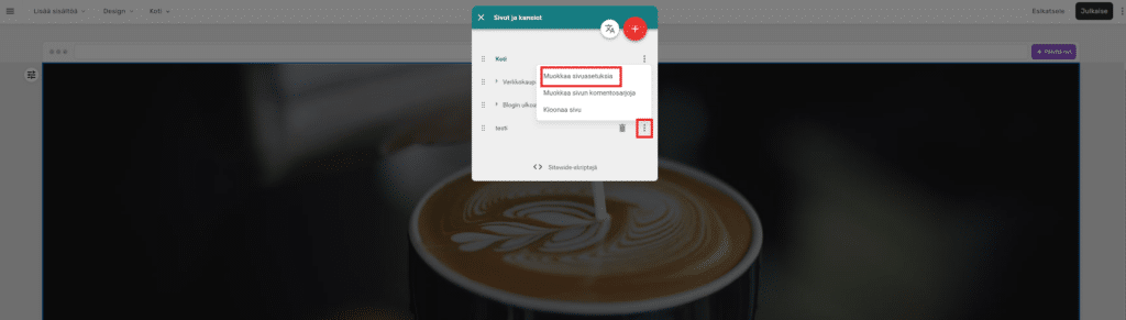 3. Valitse ”Muokkaa sivuasetuksia” pudotusvalikosta.
