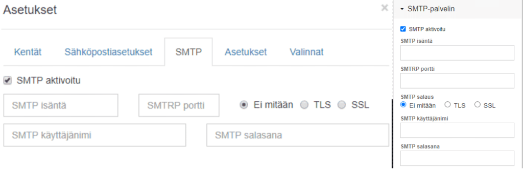 Kotisivukone käyttää viestien lähettämiseen oletuksena PHP mail -toimintoa, joka on estetty webhotelleissamme, joten voidaksesi hyödyntää Kotisivukoneen lomake-elementin toimintoja sinun pitää aktivoida SMTP käyttöön.