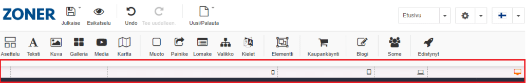 Uudemmassa Zoner Kotisivukoneversiossa automaattista asetteluvaihtoehtoa ei ole, vaan kaikki laiteversiot sivustoista luodaan automaattisesti työpöytäversiosta. Eri laitteille optimoituja versioita pääsee kuitenkin muokkaamaan sivun yläpalkista valitsemalla halutun laitetyypin.
