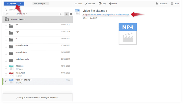 2. Napsauta + Lataa ja valitse ääni- (mp3) tai videotiedosto (mp4), jonka haluat upottaa sivulle.