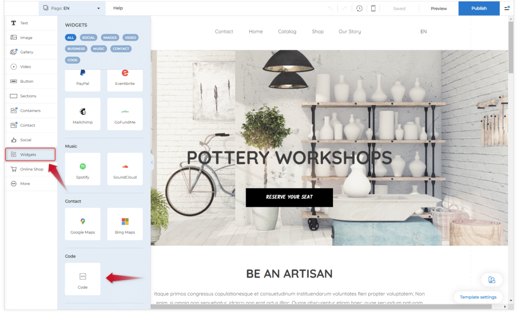 2. Napsauta vasemmalla olevasta komponenttivalikosta Widgetit.