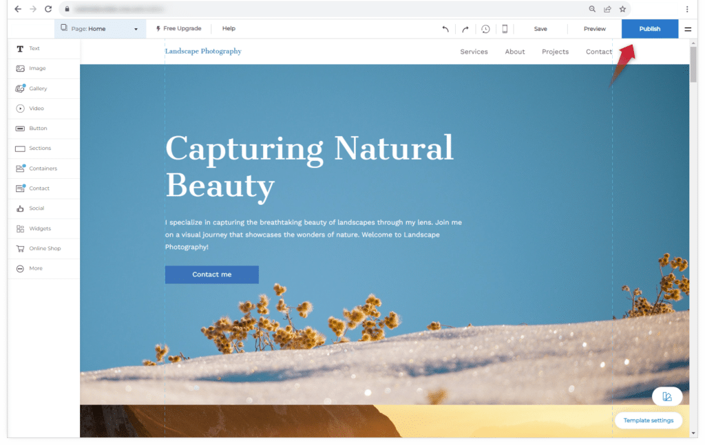 Vinkki: Klikkaa verkkotunnustasi oikean yläkulman valikossa tarkistaaksesi, että sivusto on verkossa. Jos sivusto ei näy verkossa julkaisun jälkeen, tarkista, oletko määrittänyt aloitussivun oikein.