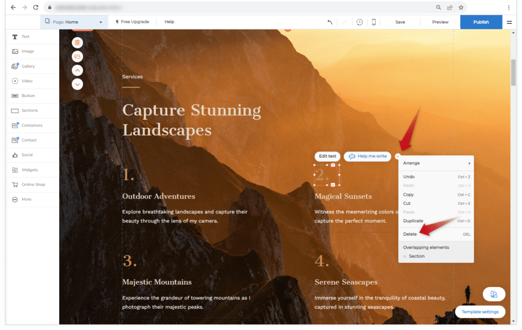 Poista komponentti valitsemalla se ja klikkaamalla näppäimistön poista-näppäintä. Voit myös klikata kuvaketta, jossa on kolme pistettä ympyrässä, ja valita näkyviin tulevasta valikosta Poista.