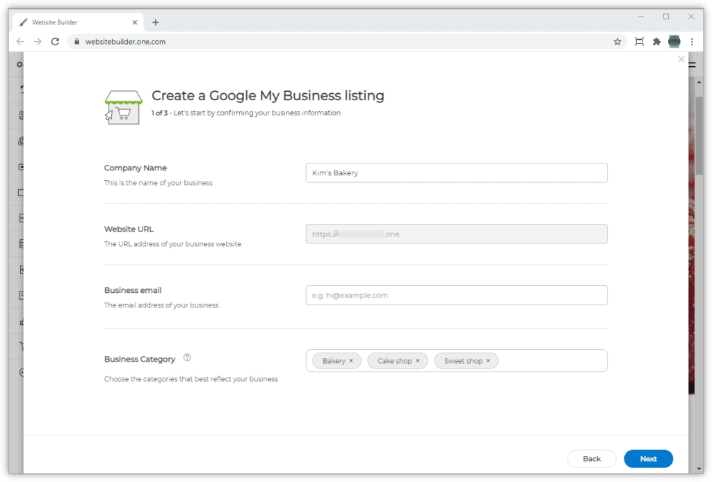 2. Lisää yrityksesi tiedot, kuten sen nimi, verkkosivuston URL-osoite ja sähköpostiosoite.