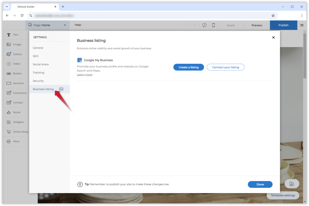 2. Julkaise sivusto, jotta sen ja Google My Business -yritystietojen välinen synkronointi näkyy verkossa.