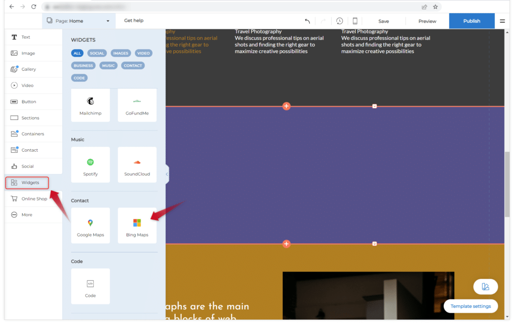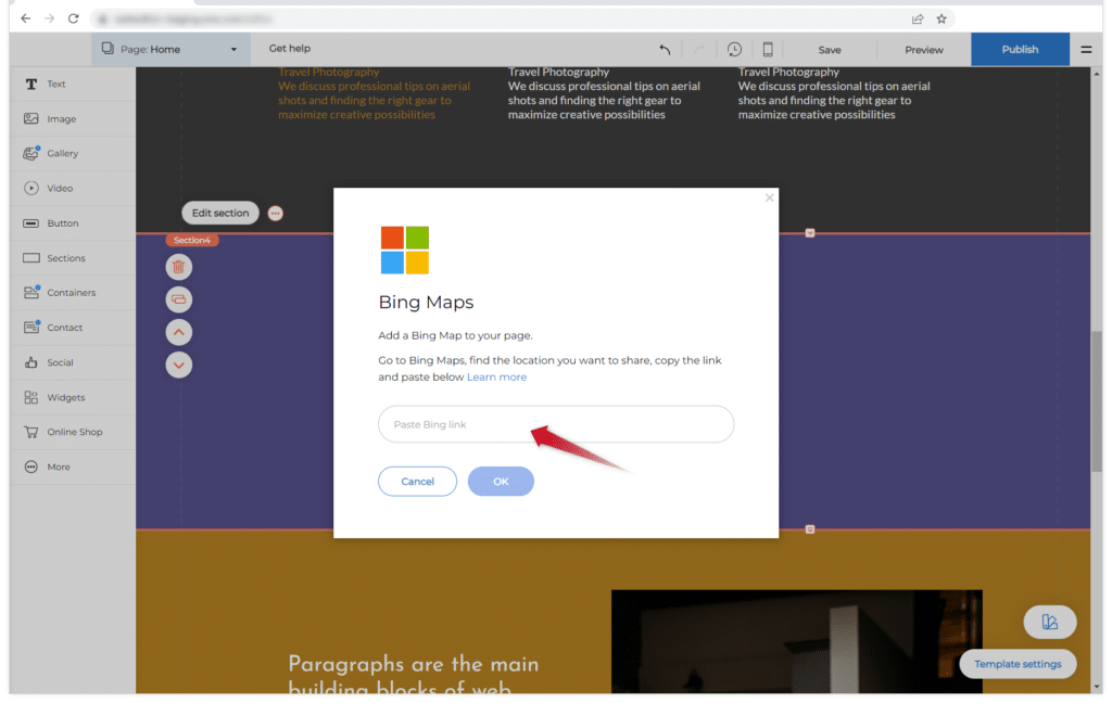 2. Siirry sivustosi osaan, johon haluat lisätä Bing Maps -widgetin.