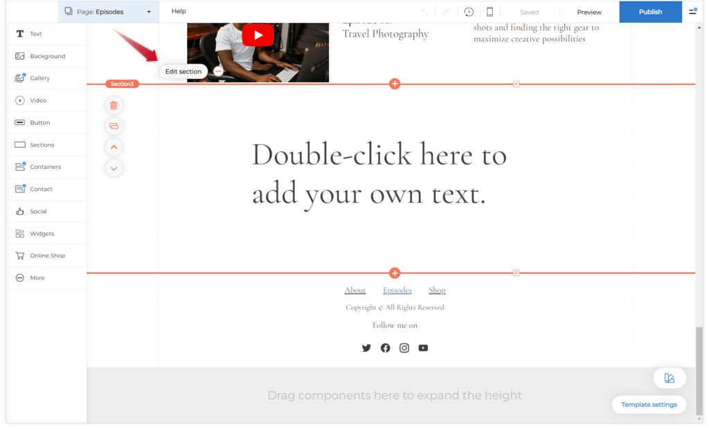 2. Valitse sivulta osio, johon haluat lisätä videotaustan.