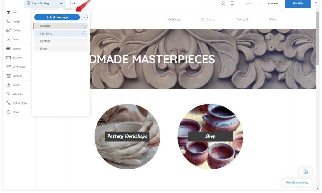 - Napsauta sinistä + Lisää uusi sivu -painiketta.