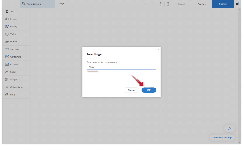 Anna sivulle nimi ja tallenna napsauttamalla OK. Sivun nimi näkyy sivuston valikossa.