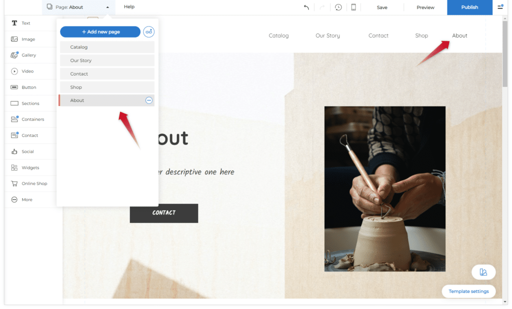 Sivu on lisätty ja se näkyy myös valikossa. Voit nyt aloittaa sen muokkaamisen.