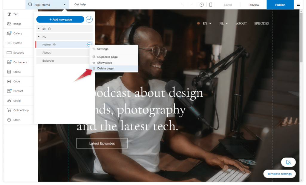 - Valitse Poista vahvistaaksesi, että haluat poistaa sivun,