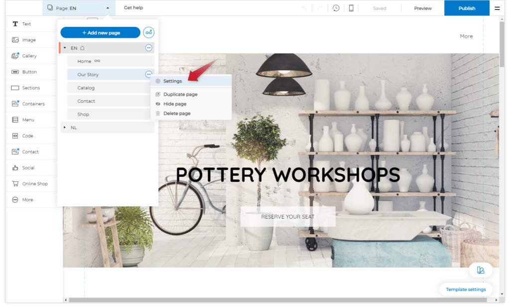 - Napsauta hiiren kakkospainikkeella sivua, jonka mallia haluat muuttaa, ja valitse Asetukset.