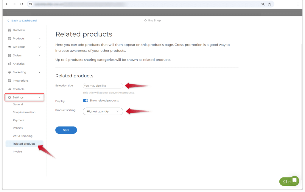 Halutessasi voit itse valita aiheeseen liittyvät tuotteet tietylle tuotteelle. Nämä asetukset ovat ensisijaisia myymäläsi yleisiin asetuksiin nähden.