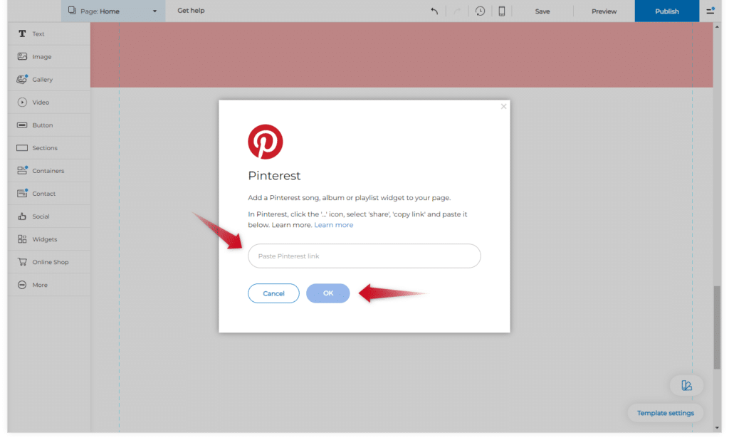 2. Siirry verkkosivustosi sivulle tai osioon, johon haluat lisätä Pinterest-widgetin.