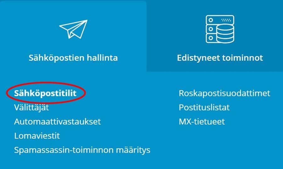 3. Valitse päävalikosta Sähköpostien hallinta –> Sähköpostitilit