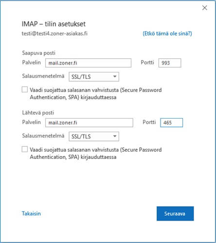 Palvelin: Incoming mail server, jonka sait työkalulla kohdassa 1.