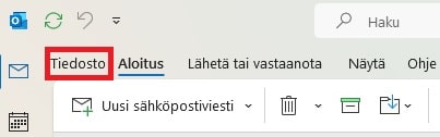Valitse Outlookin oikeasta yläkulmasta kohta Tiedosto.