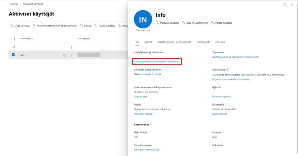 Tässä ohjeessa käymme läpi miten lisätään vaihtoehtoinen osoite (alias) käyttäjälle Microsoft 365 palvelussa.