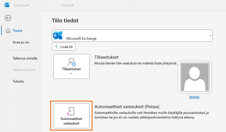 - Napsauta Tilit → Automaatinen vastaustoiminto.