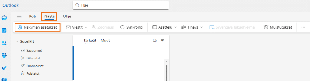 - Valitse yläreunan valikosta Näytä → Näkymän asetukset.