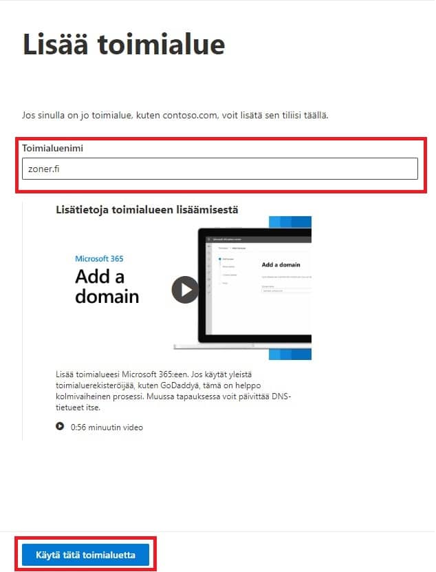 Tässä ohjeessa käymme läpi miten verkkotunnus lisätään, vahvistetaan ja ohjataan Microsoft 365 -palveluun.