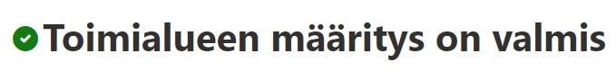 Kun tietueet on lisätty DNS-hallintaan ja näkyvät ulospäin oikein, antaa palvelu ilmoituksen Toimialueen määritys on valmis.