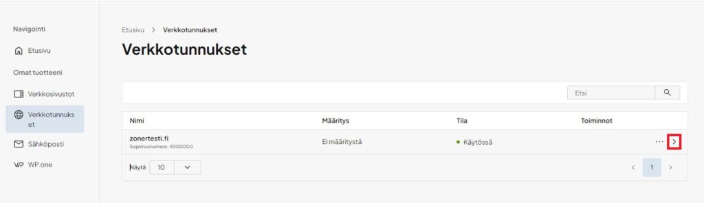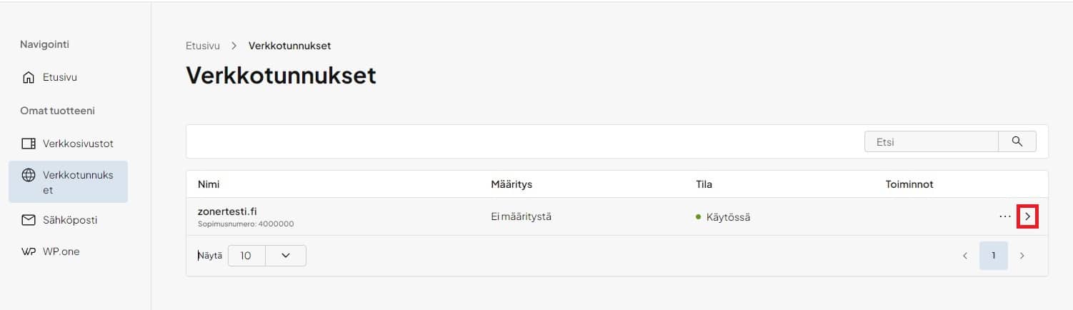 2. Paina verkkotunnuksen oikealta puolelta löytyvää nuolipainiketta:
