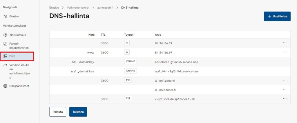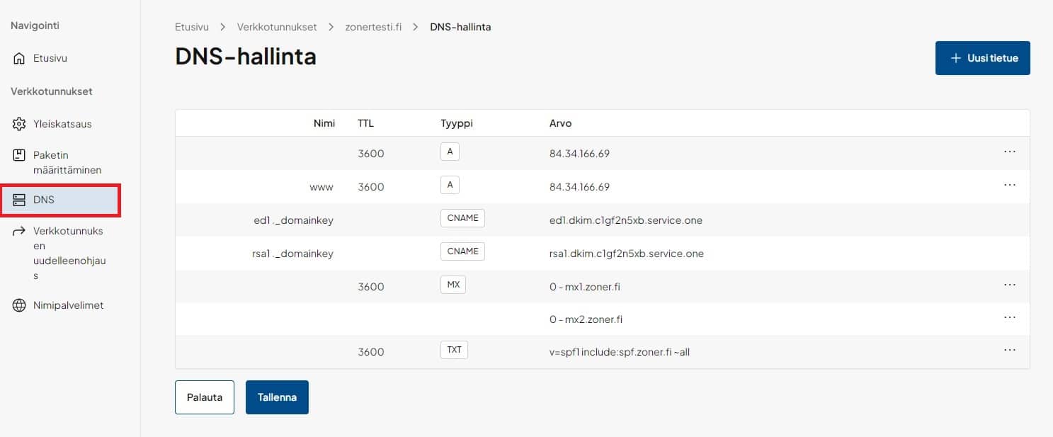 12. Napsauta vasempaan valikkoon ilmestynyttä kohtaa DNS: