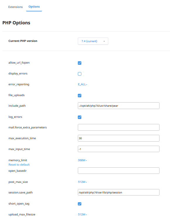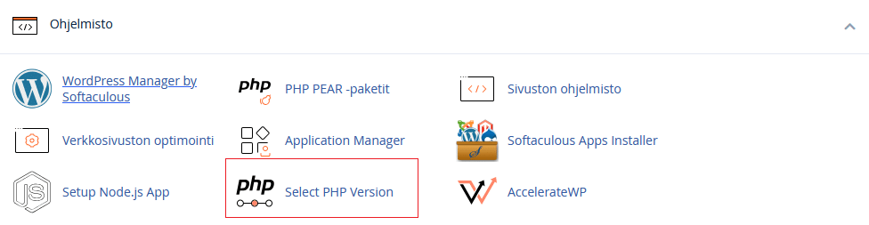 Voit vaihtaa PHP:n version kätevästi cPanelissa.