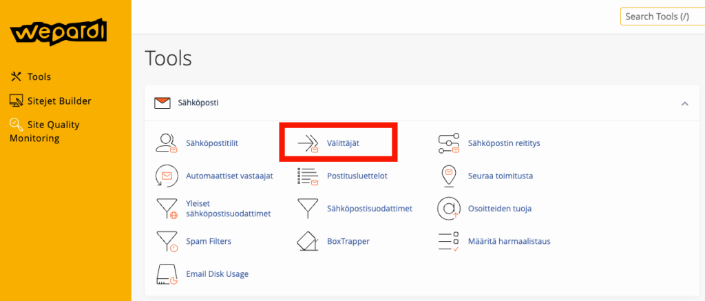 2. Siirry cPanelissa kohtaan Sähköpostitilit -> Välittäjät.