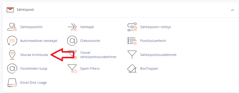 2. Siirry cPanelissa kohtaan Sähköposti -> Seuraa toimitusta