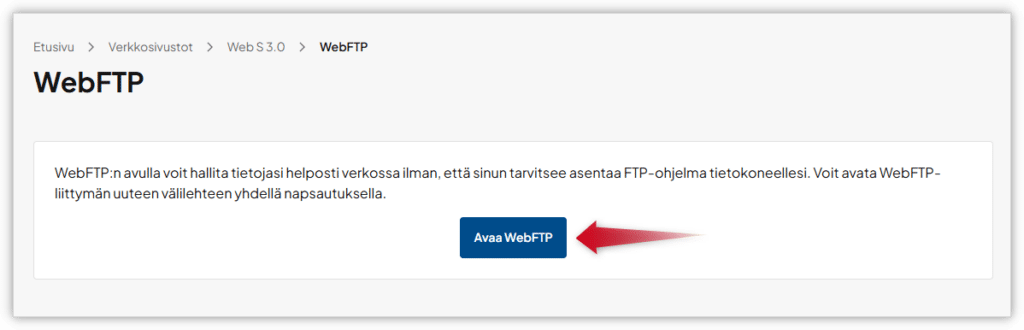 5. Klikkaa avautuneella sivulla Avaa WebFTP-painiketta, niin WebFTP-sivu avautuu uudelle välilehdelle.