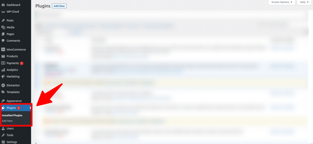 Siirry vasemmanpuoleisen valikon kohtaan Lisäosat (Plugins):