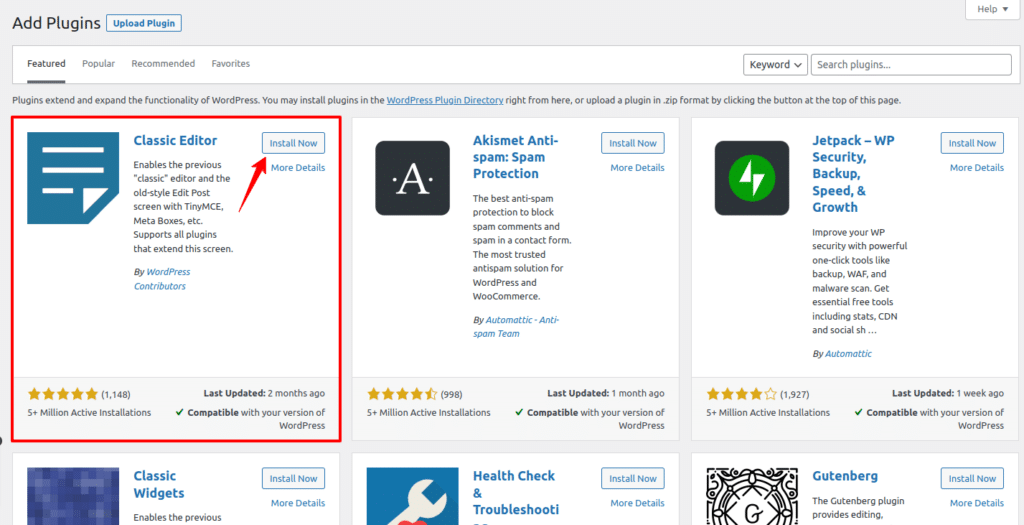 Löydettyäsi lisäosan, jonka haluat asentaa, napsauta sen vieressä olevaa Asenna nyt (Install Now) -painiketta.