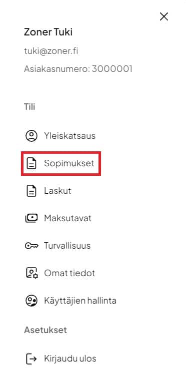 3. Valitse aukeavasta sivuvalikosta Sopimukset.