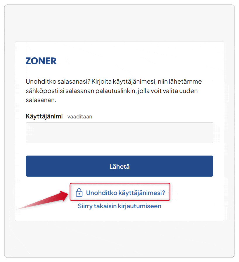- Klikkaa seuraavaksi ”Unohditko käyttäjänimesi?”